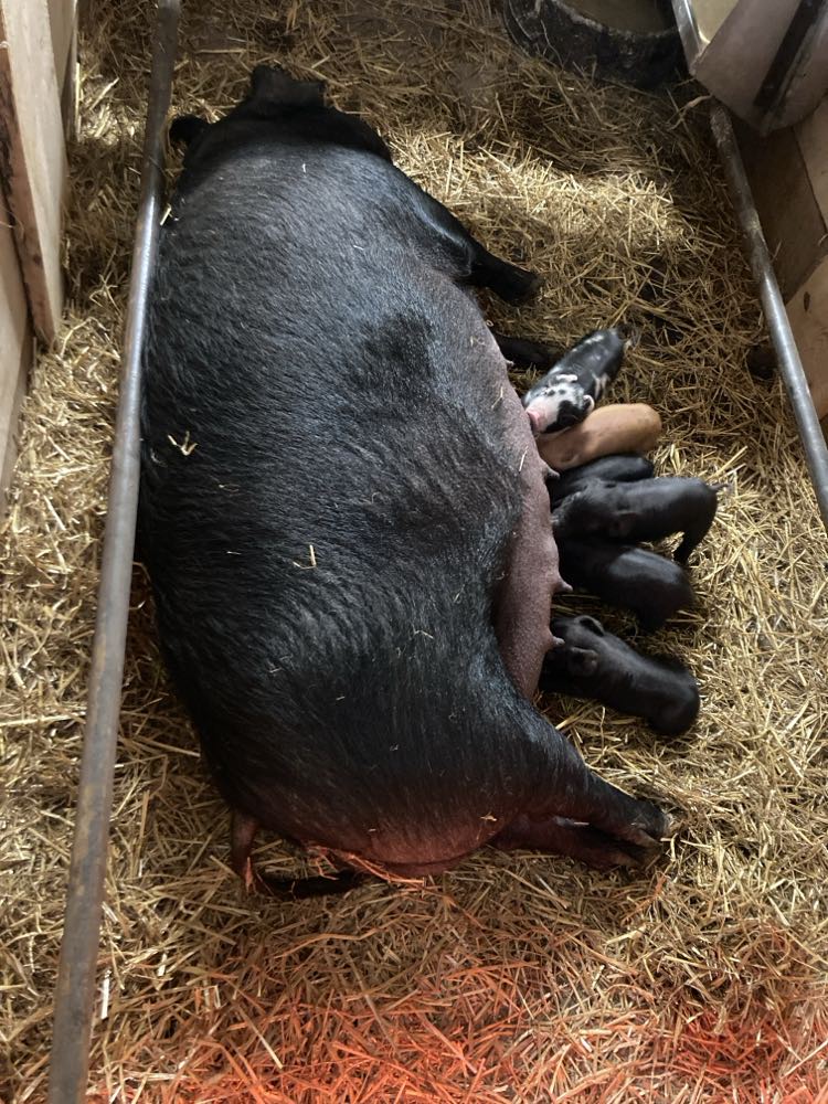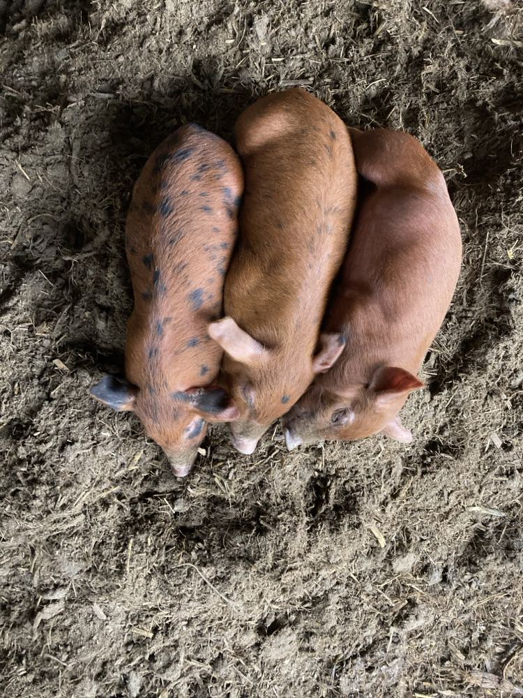 Piglets are fed milk from our sows as well as non-GMO feed with 18% protein, which is ideal for young piglets.