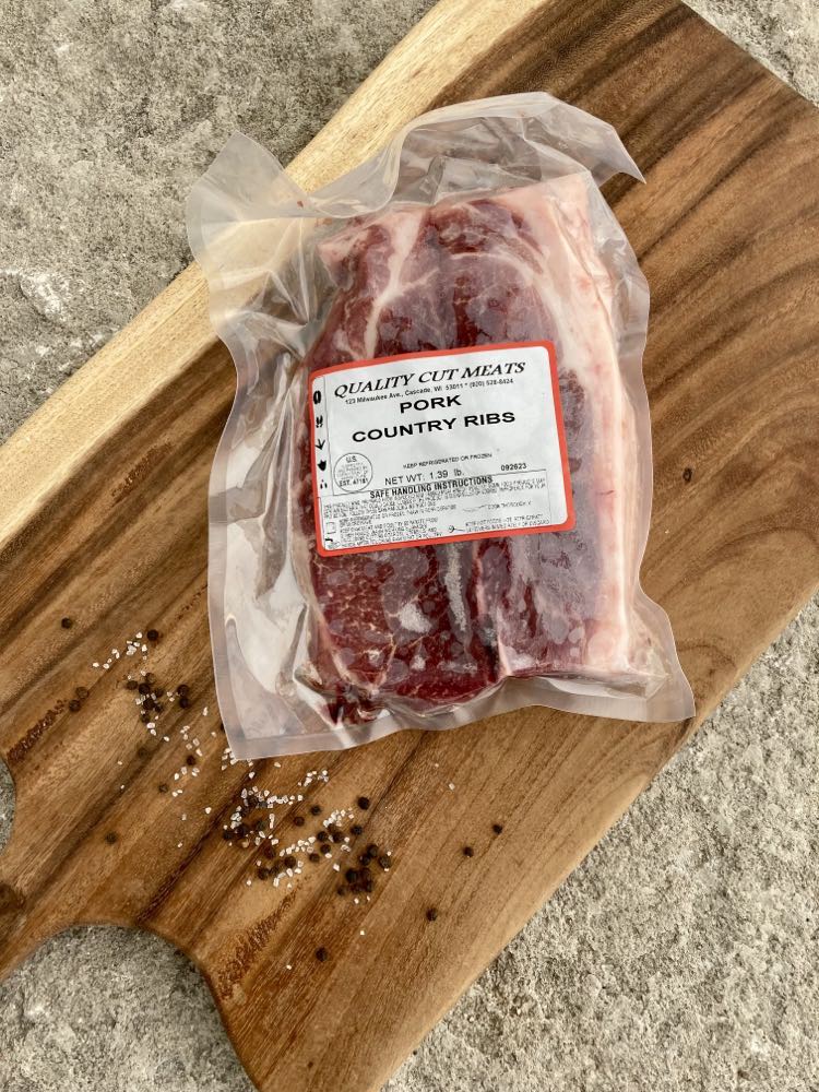 Country Style Ribs are cut from the shoulder of the pig. These "ribs" are great cooked long and slow. They may or may not have bones in them.
