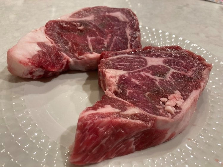 Ribeye Steaks are sliced from a standing rib roast. It is a boneless cut (when the bone is attached it is called a Rib Steak). The excellent marbling in this cut gives you a tender and flavorful steak. This steak is best grilled and will not disappoint! Steaks are 1" thick.