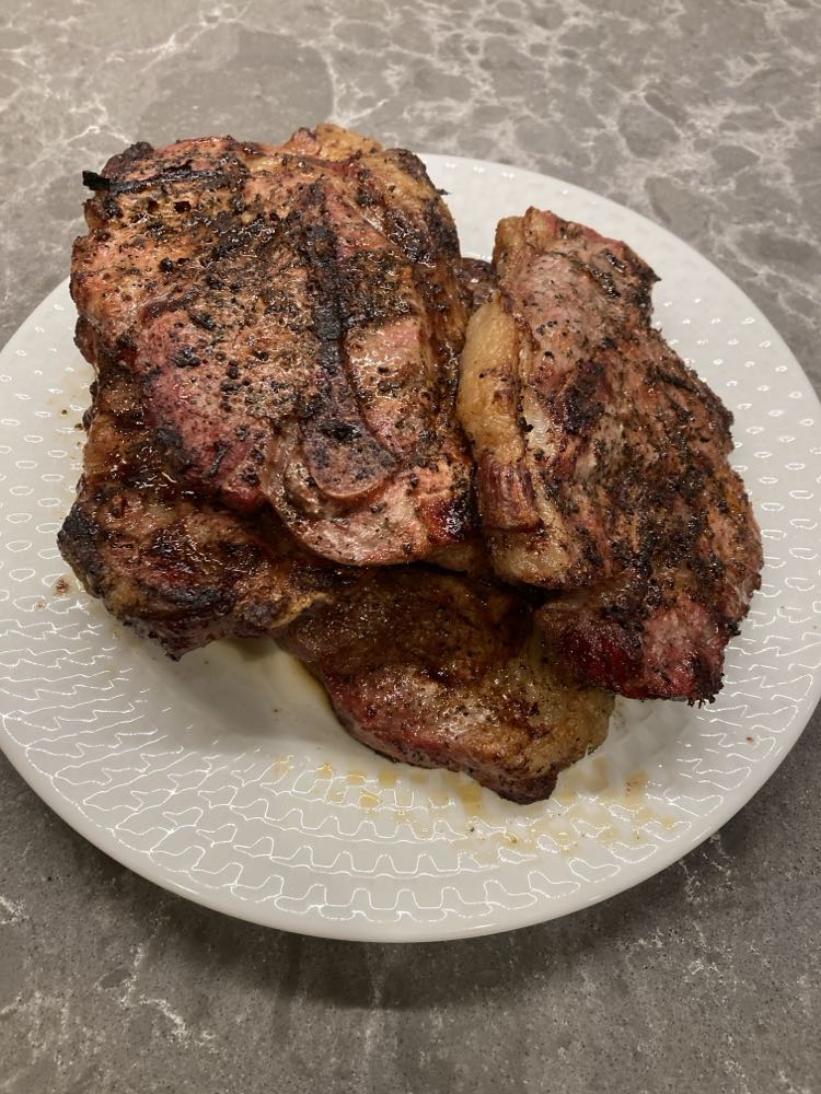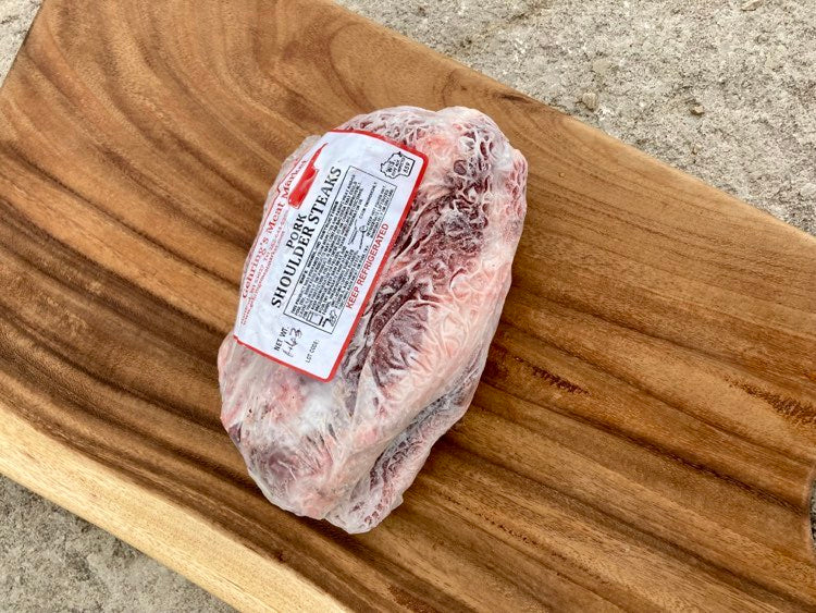Pork shoulder steak is a great value that has marbling which contributes to its amazing flavor. It is sometimes called a blade steak as it is cut from the shoulder blade area. Shoulder steaks can be cooked a variety of ways including grilling, smoking, in the oven, on the stovetop, in the air fryer, etc.