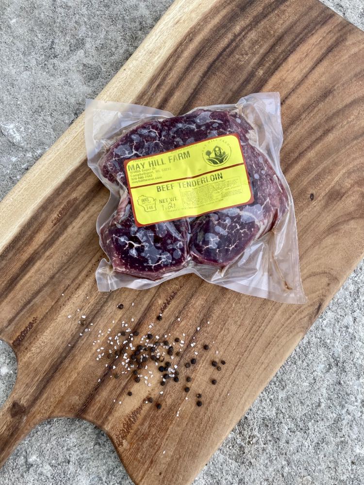 Tenderloin Steaks from our pasture-raised, grass-finished beef cattle. Also called filet mignon, this cut is the most tender part of the beef and highly sought after as the best cut available. These are great for a special celebration dinner or just because! Cook with care for a delicious result! Tenderloin is butterflied and is 3/4" - 1" thick. Tenderloin steaks may be cut around 8 oz. each, but will vary.